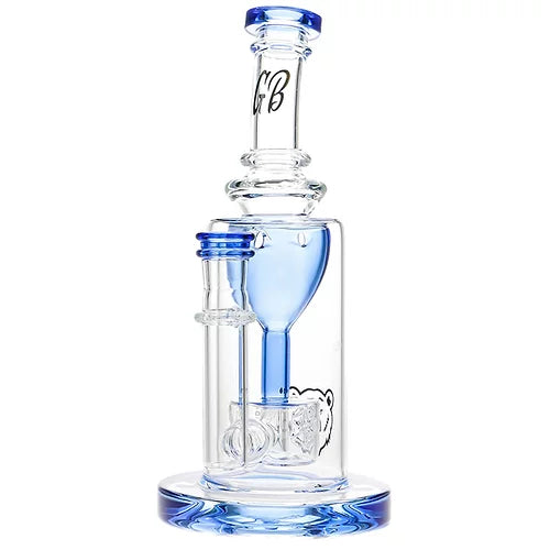 The all new "GB Quad Seed Incycler" is in! This incycler style piece features an intricately designed Quadruple "Sacred Seed of Life" clear perk, a reinforced joint, and our signature "GB" logos. This piece also features a matching accented color scheme that includes a fully colored mouth piece and accented base.