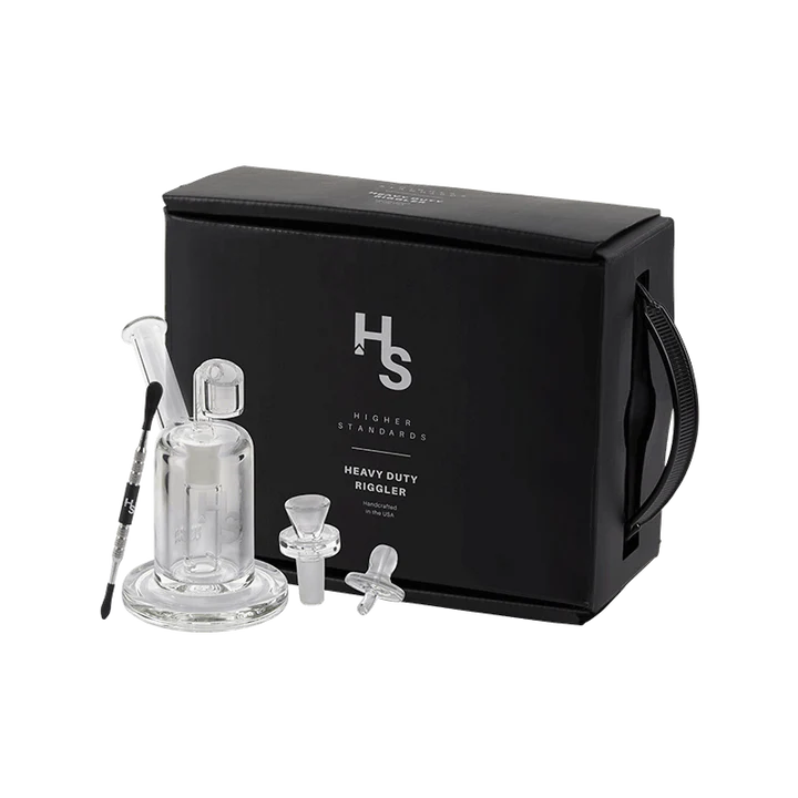 The Higher Standards Heavy Duty Riggler is engineered for advanced, portable water filtration of your dry herb and concentrates. This dual-use innovation features a 7 mm thick, medical-grade borosilicate glass construction. Designed with a fixed diffused downstem, the Riggler creates fine bubbles and promotes superior airflow for moisture-rich and dense pulls.