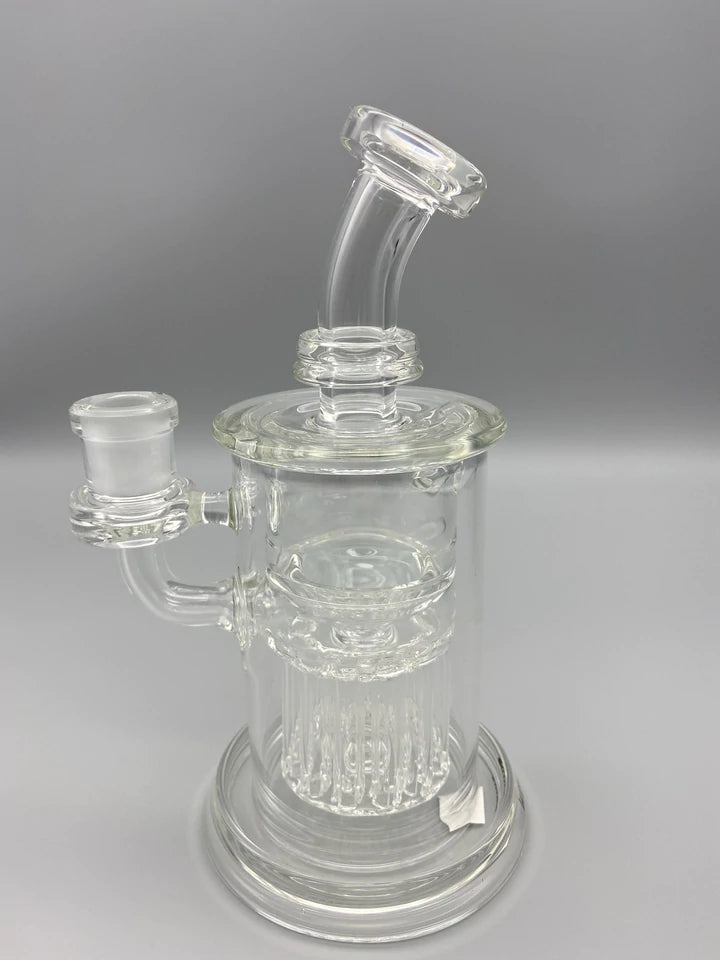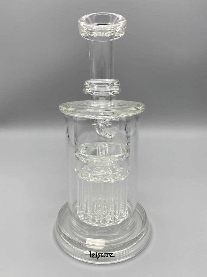 One of the newest rigs in the Leisure Glass line up is the 13-Arm Tree Incycler Rig. This powerful mid-size dab rig features a base Tree perc with an internal recycling water chamber and fixed female joint. This Incycler features clear, quality boro glass and is hand blown by Luke Wilson for Leisure Glass. This 14mm dab rig functions perfectly as a rig or flower bong. Made from durable American glass, this water pipe guarantees smooth, filtered hits every time.