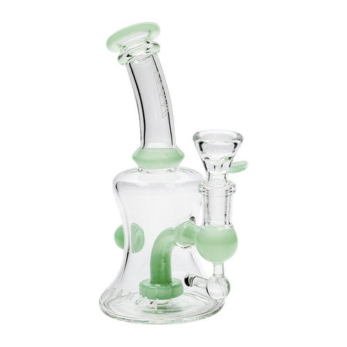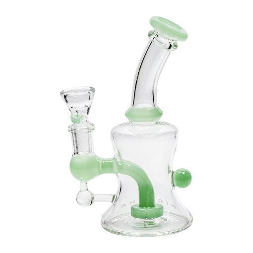 The Piranha Glass Hourglass Rig by is made of high-quality borosilicate glass made to withstand high temperatures. The disc percolator features small slits on the bottom and is designed for better vaporization and filtration. This piece is sure to add a touch of vibrant sophistication at an affordable price. Each piece comes with a bowl compatible with dry herb but can also work with a 14mm quartz banger to use this hourglass rig with concentrates.